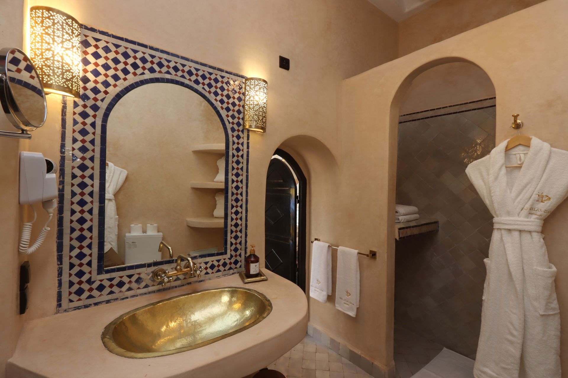 Une parenthèse enchantée au cœur de Marrakech niché dans la médina, au cœur du quartier authentique du Riad Larousse, le Riad Atlas Mejbar est un véritable havre de paix récemment restauré dans la pure tradition marocaine. Un des seuls Riads de Marrakech où vous aurez un accès direct devant en voiture ainsi qu'un parking à 30 m. Sa situation privilégiée vous permet de rejoindre Dar El Bacha en seulement 5 minutes, la mythique place Jemaa el-Fna à moins de 10 minutes, et l'aéroport en 15 minutes, facilitant ainsi tous vos déplacements. Dès votre arrivée, laissez-vous charmer par le patio luxuriant, où une piscine chauffée et une fontaine murmurante vous invitent à la détente. Envie d'un moment suspendu ? Direction la terrasse panoramique, où s'offre à vous le spectacle des toits de la médina et de la majestueuse Koutoubia ainsi que les montagnes de l'Atlas. Asseyez-vous sur un transat confortable, dégustez un cocktail ou un thé à la menthe au bar et laissez la magie opérer. Un confort raffiné et authentique Le riad propose quatre suites et quatre chambres, conçues pour allier élégance et bien-être. Une expérience sensorielle inoubliable Commencez votre journée par un petit-déjeuner aux saveurs marocaines, servi en terrasse ou au bord de la piscine, selon vos envies. A l'heure du déjeuner ou du dîner, savourez les délices de la cuisine marocaine, préparée sur place avec des ingrédients frais et locaux. Expériences uniques au cœur de Marrakech Envie de découvrir Marrakech autrement ? L'équipe du Riad Atlas Dama est à votre disposition pour organiser des expériences sur mesure : balades en vélo électrique, balades en calèche, ou encore excursions soigneusement sélectionnées pour découvrir la ville et ses trésors cachés. Laissez-vous séduire par l'authenticité, le charme et l'élégance du Riad Atlas Dama. Plus qu'un séjour, une véritable immersion dans l'art de vivre marocain vous attend.